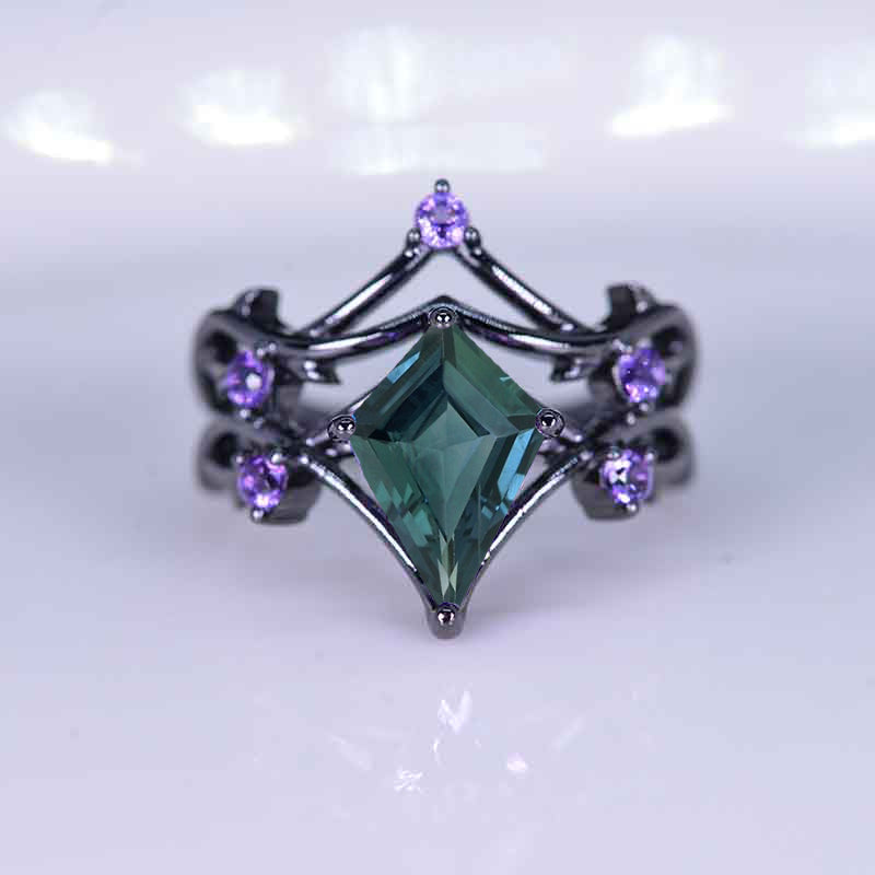 2.5 Carat Kite Teal Sapphire Engagement Ring. 2.5CT Fancy Shield Shape Amethyst Black Gold Ring