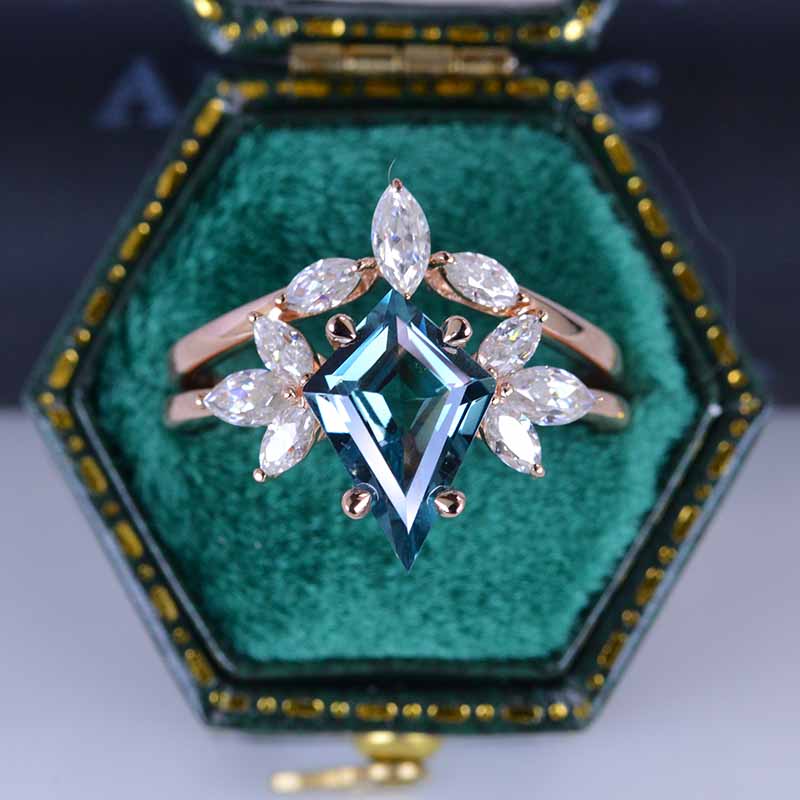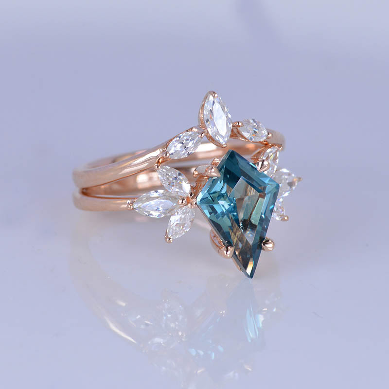 2.5 Carat Kite Teal Sapphire Engagement Ring. 2.5CT Fancy Shield Shape Teal Sapphire Ring Set