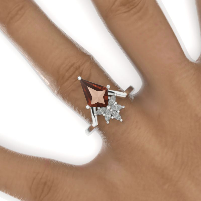 The default design option features 12x8mm Kite Center Ethically Lab-Grown Zultanite Grade AAA+ Stones,Â