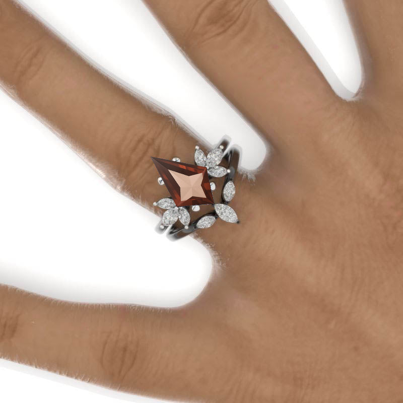 The default design option features 12x8mm Kite Center Ethically Lab-Grown Zultanite Grade AAA+ Stones, Moissanite Accent D-Colorless, VVS1-Clarity, VG-Cut, Ex-Polish, VG-Symmetry