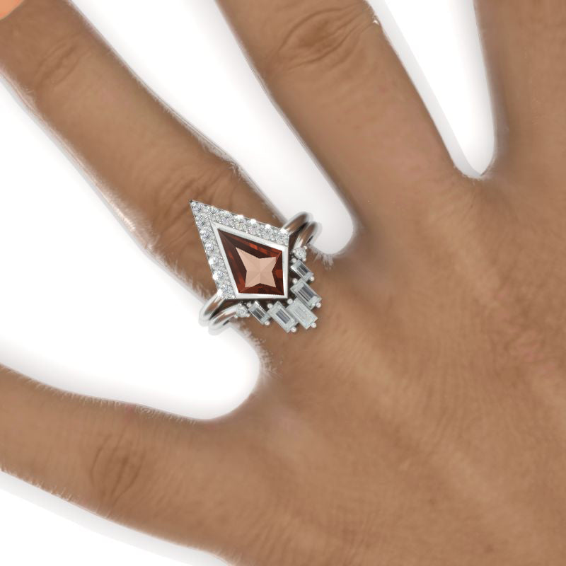 The default design option features 12x8mm Kite Center Ethically Lab-Grown Zultanite Grade AAA+ Stones,Â