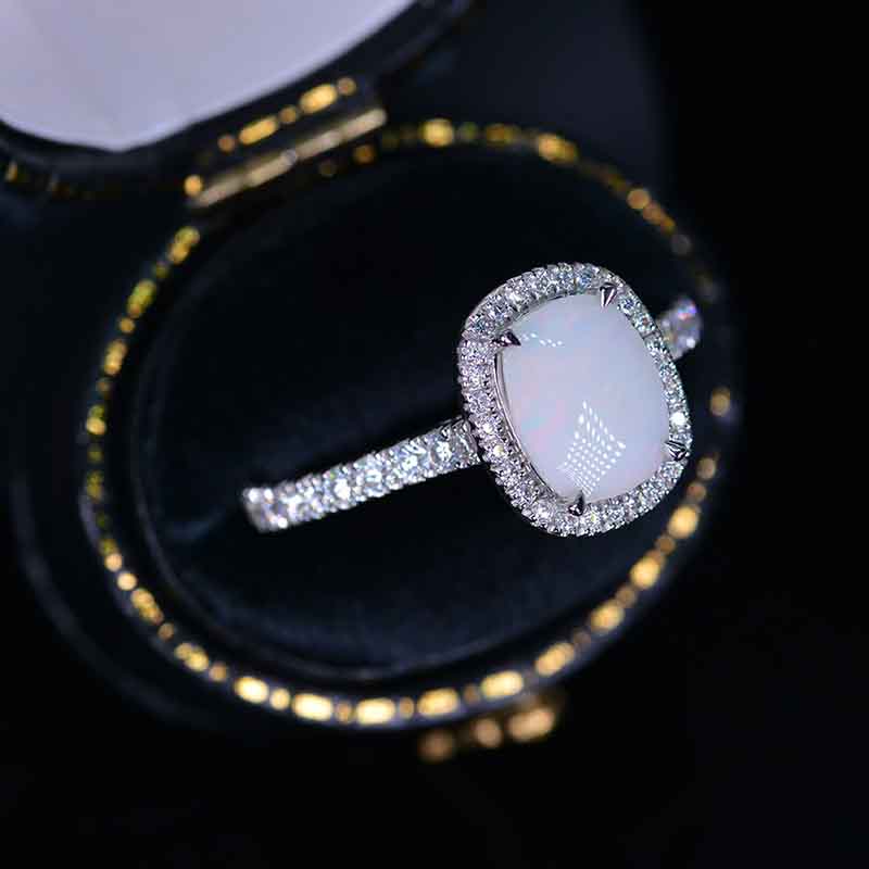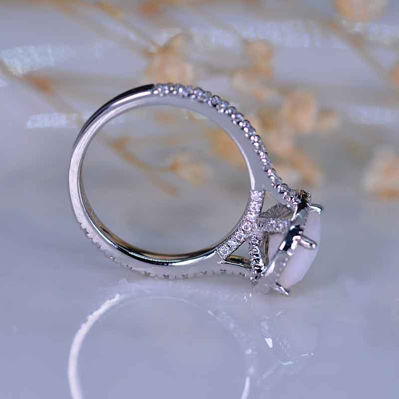 2.5Ct Cushion Genuine Natural White Opal 14K White Engagement Ring, Cu - Giliarto