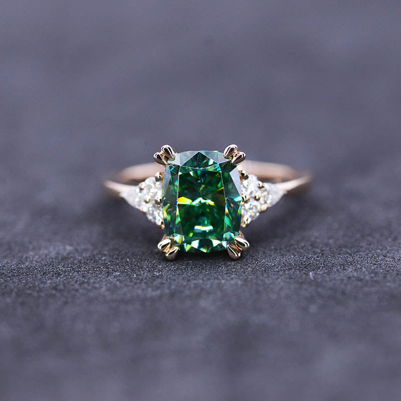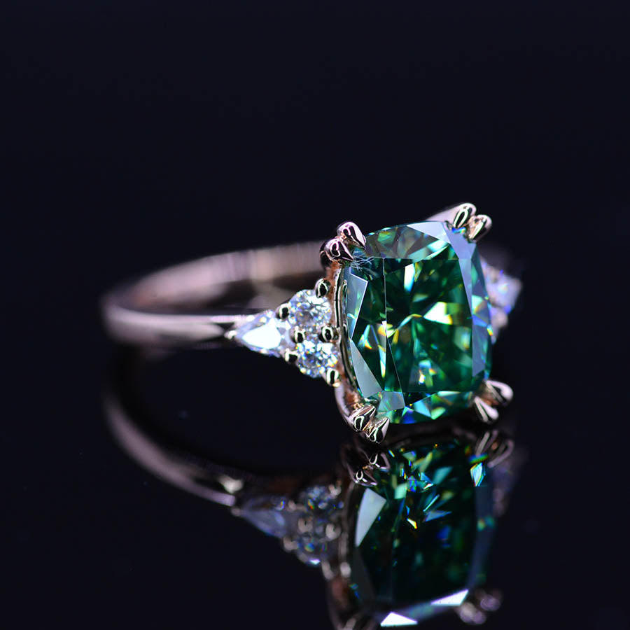 2.5Ct Cushion Green Moissanite Vintage Engagement Ring, Cushion Moissa - Giliarto