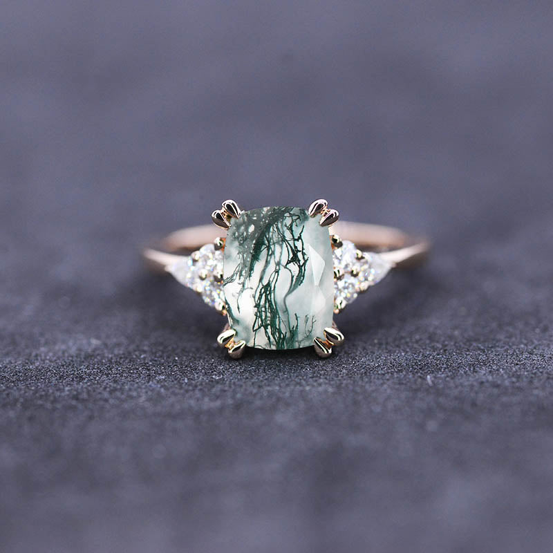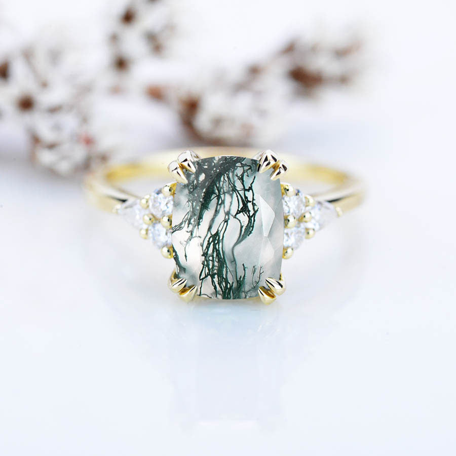 2.5Ct Cushion Moss Agate Vintage Engagement Ring, Cushion Moss Agate E - Giliarto