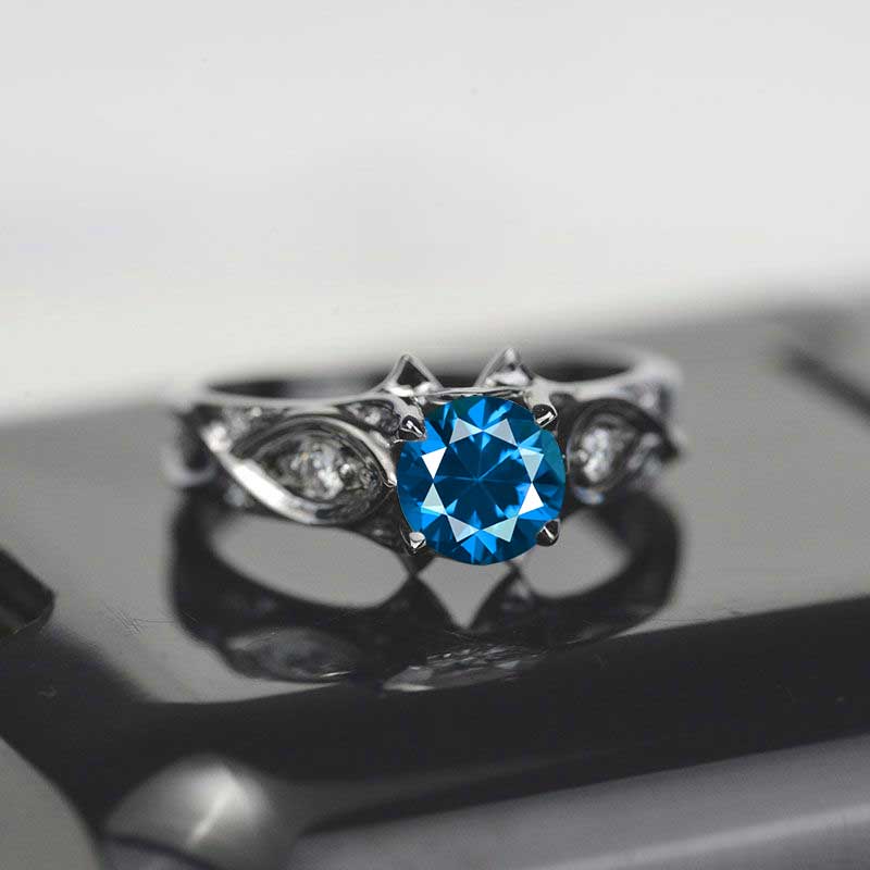 2 Carat Ethically Lab-Grown Cornflower Sapphire Center Stone - Round 8 mm, D-Colorless, VVS2-Clarity, Ex-Cut, Ex-Polish, VG-Symmetry) and 8 - Accents 0.1 CTW with 14K Black Gold.