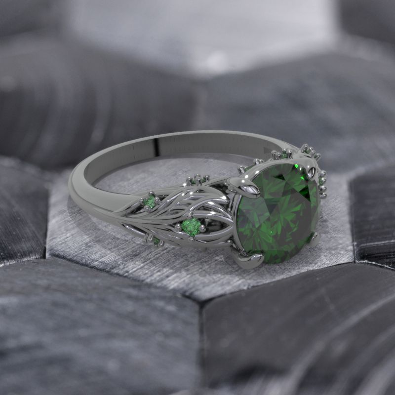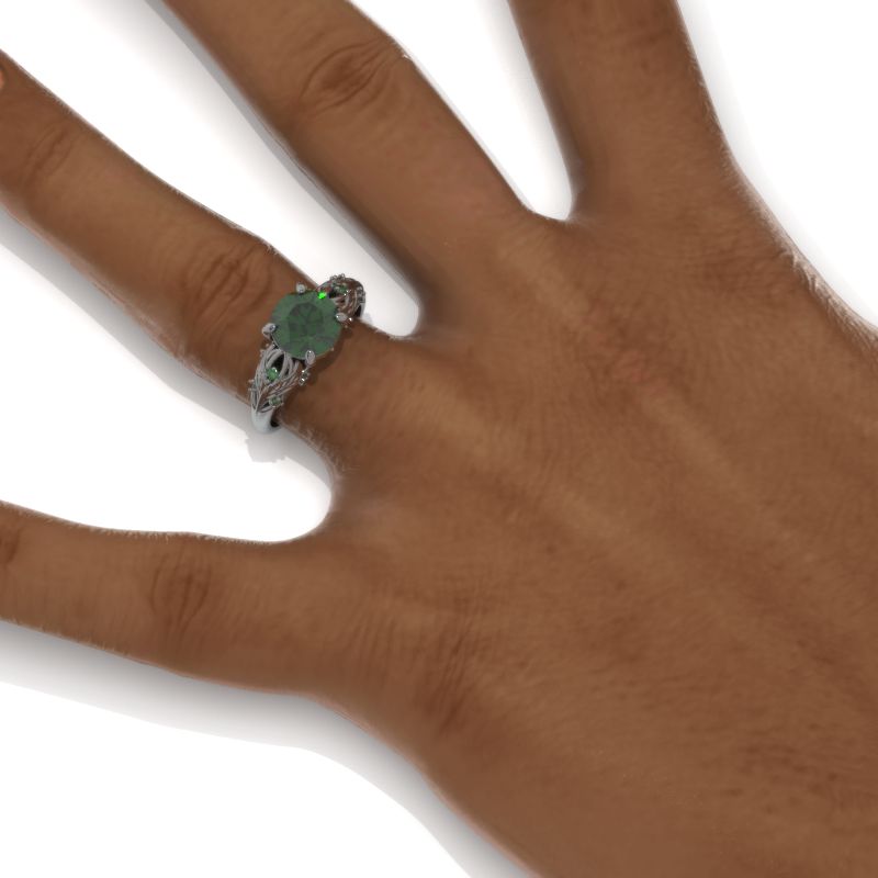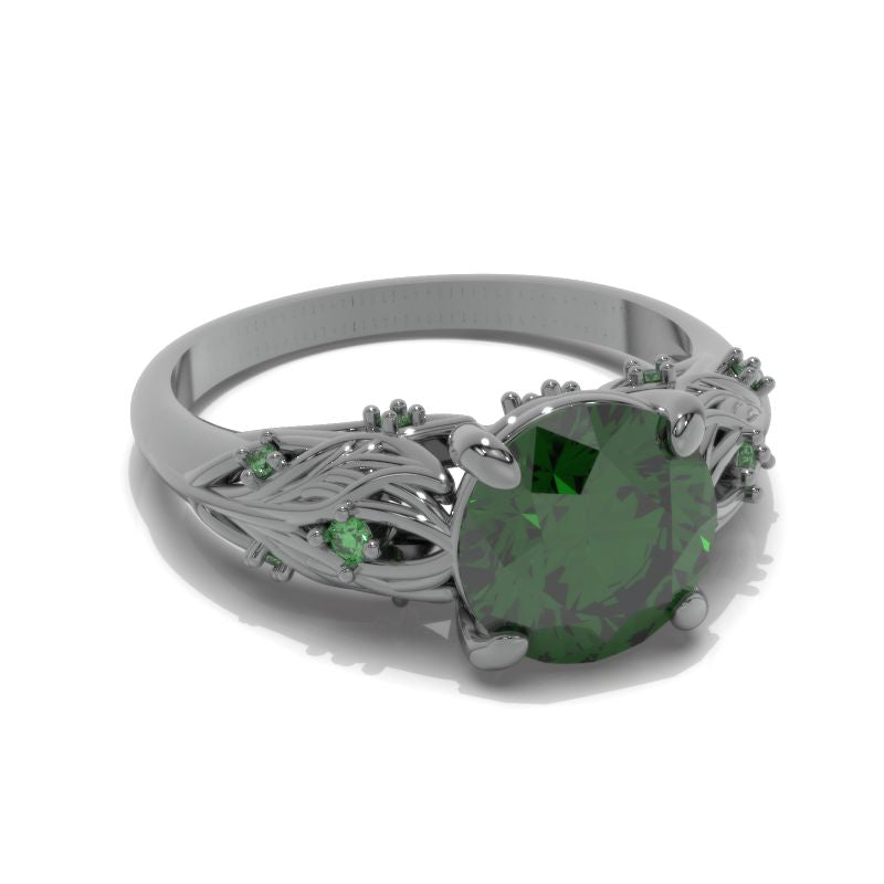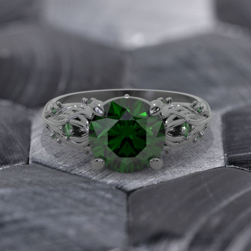 Emerald Center Stone - Round 8 mm, Ethically Lab-Grown, VVS1-Clarity, Ex-Cut, Ex-Polish, VG-Symmetry) and 8-Accents  0.1 CTW with 14K Gold or Platinum.
