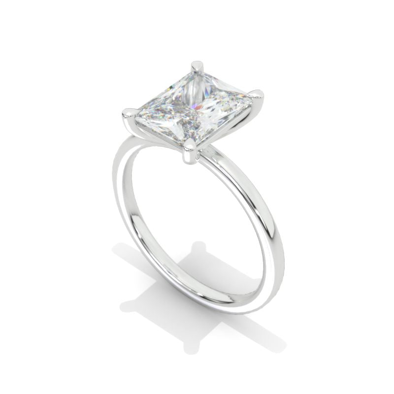 The default design option features Approximately 2+ Carat 9х7 Radiant Cut LAB-Grown Diamond Center Stone D-Colorless, VVS1-Clarity, VG-Cut, Ex-Polish, VG-Symmetry set with D- Colorless LAB-Grown Diamond Accent Stones