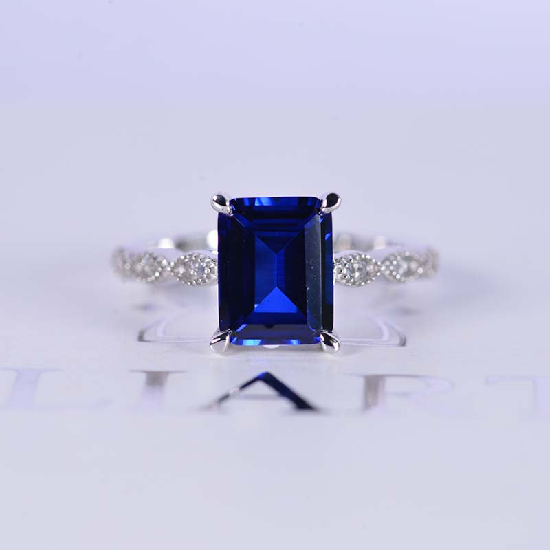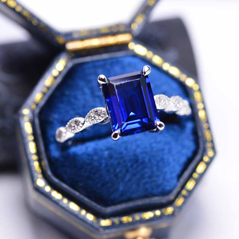 2 Carat 9x7mm Emerald Cut Royal Blue Sapphire White Gold Engagement Ri - Giliarto