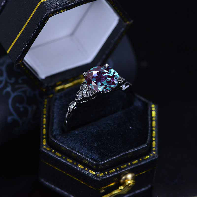 2 Carat Alexandrite Celtic Engagement Black Gold Ring - Giliarto