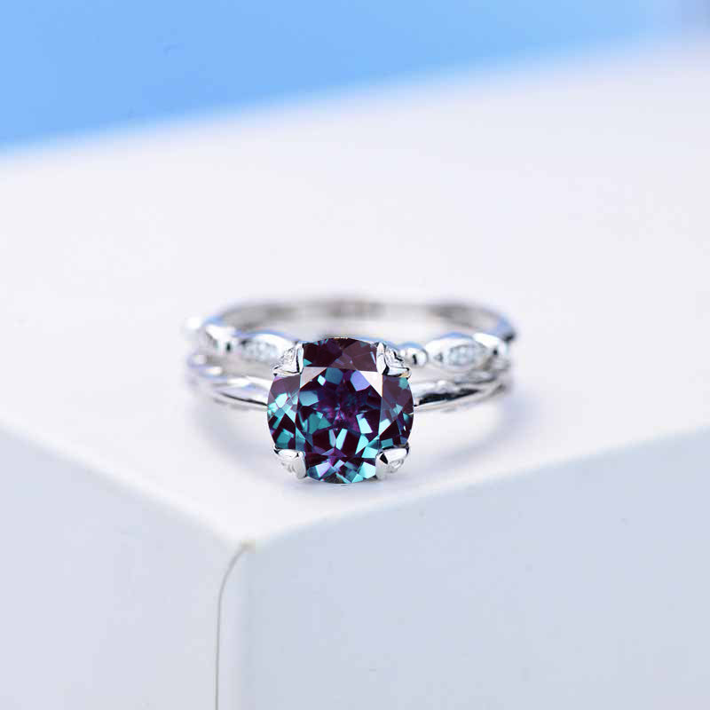 2 Carat Alexandrite Engagement Eternity Gold Rings Set - Giliarto