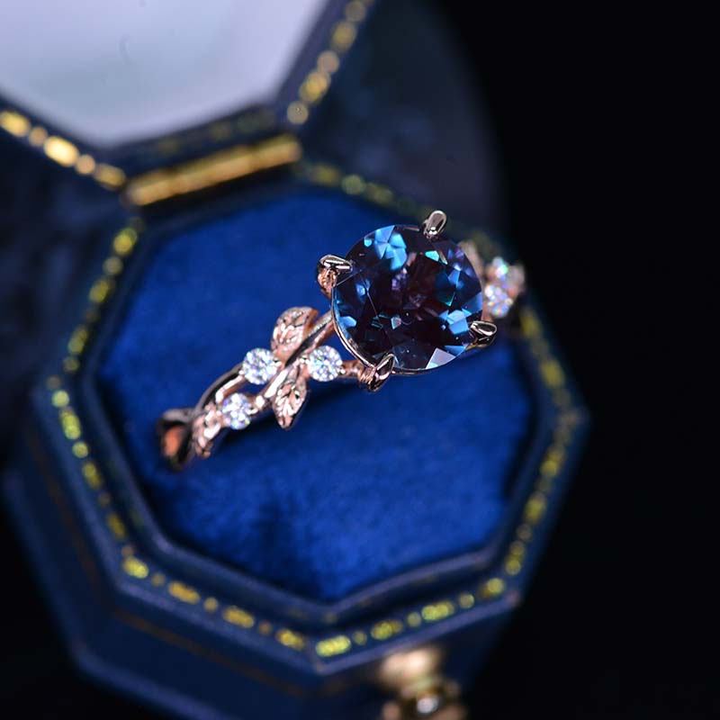 2 Carat Alexandrite Floral Rose Gold Fairytale Engagement Ring - Giliarto