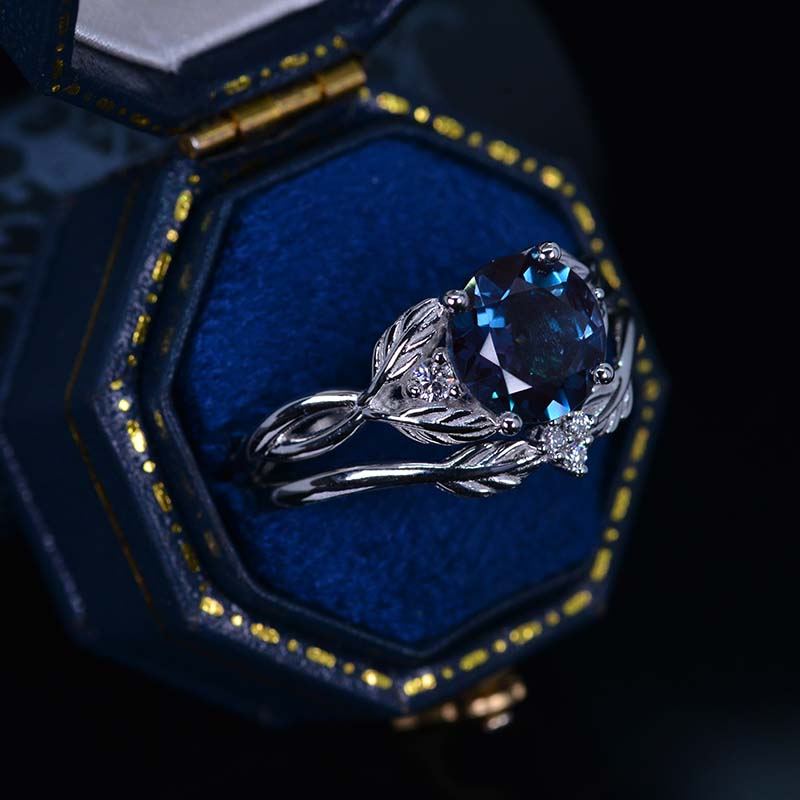 2 Carat Alexandrite Floral Shank Gold Engagement Ring - Giliarto