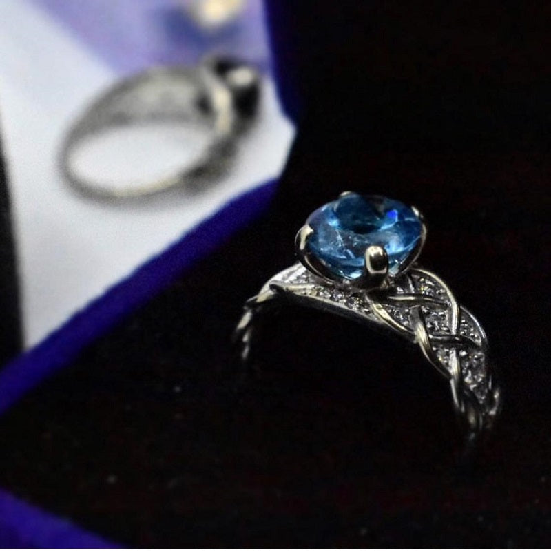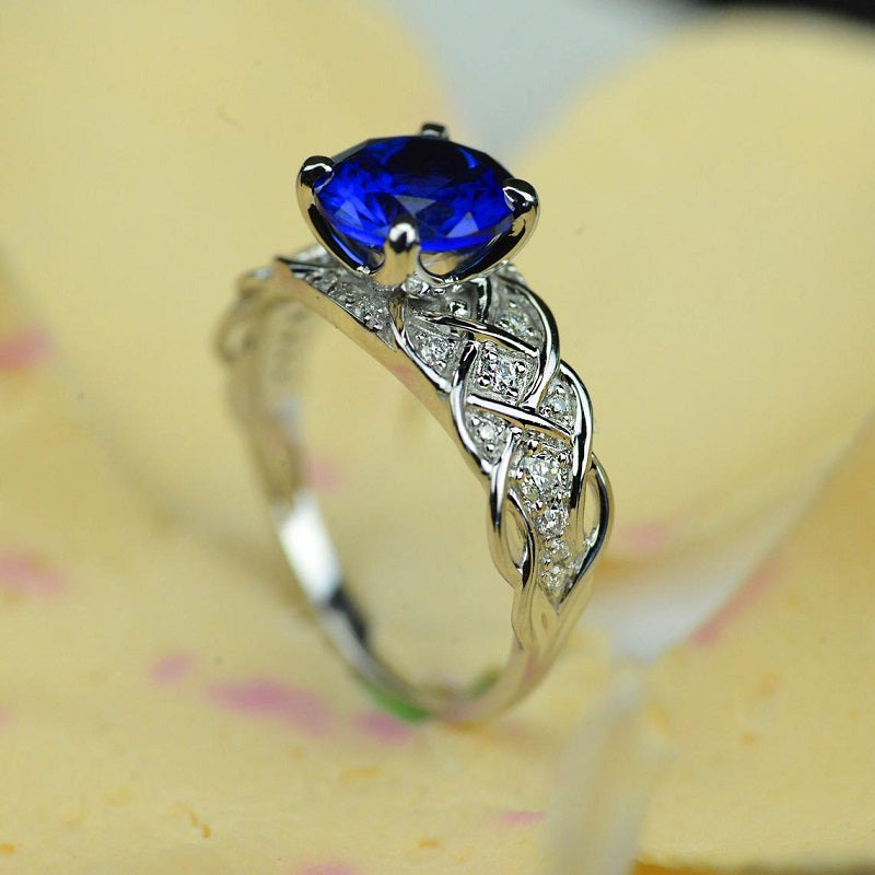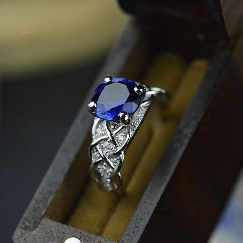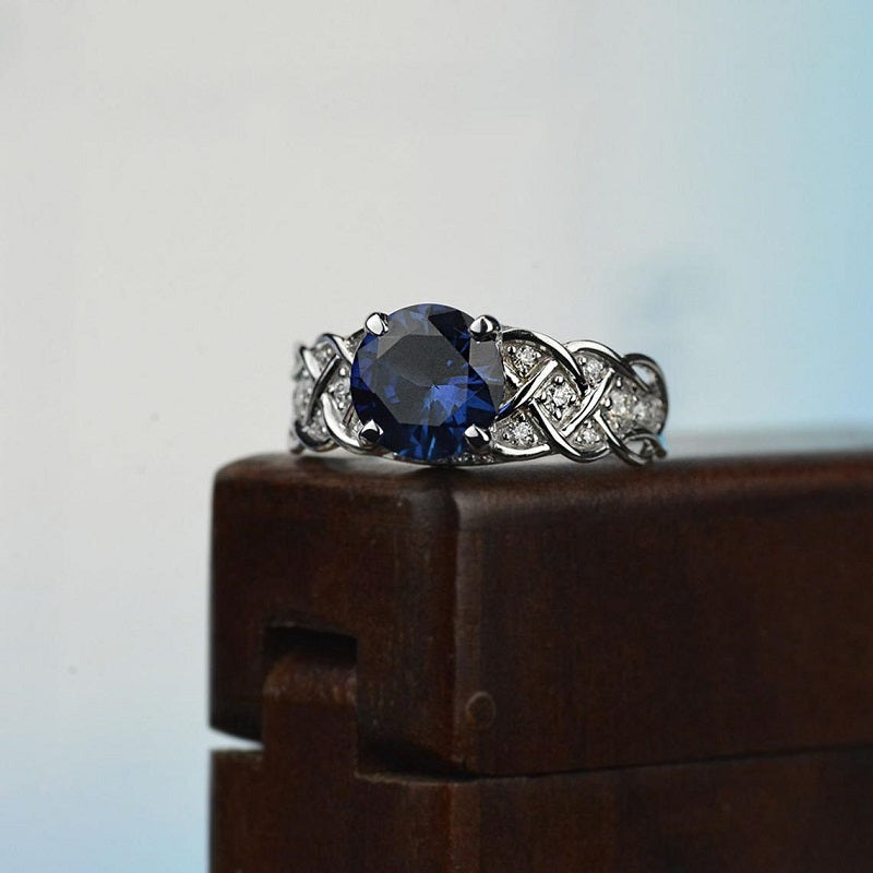The default design option features 2 Carat Round 8mm Lab-Grown Royal Blue Sapphire with 24 -0.2CTW Diamond (HI I2) Accent Stones D-Colorless, VVS1-Clarity, VG-Cut, Ex-Polish, VG-Symmetry