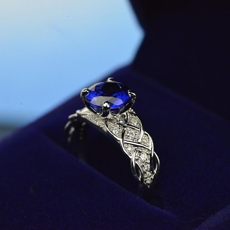 2 Carat Royal Blue Sapphire Engagement Ring with Diamond Accent Stones - Giliarto