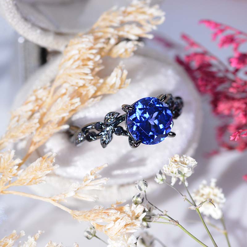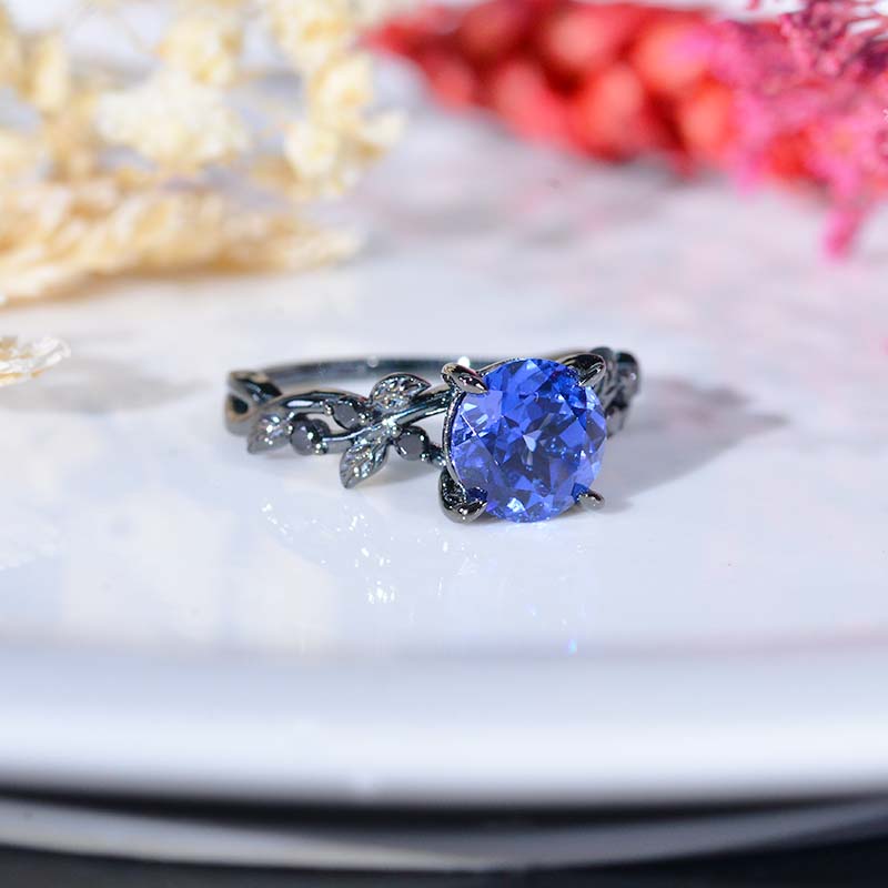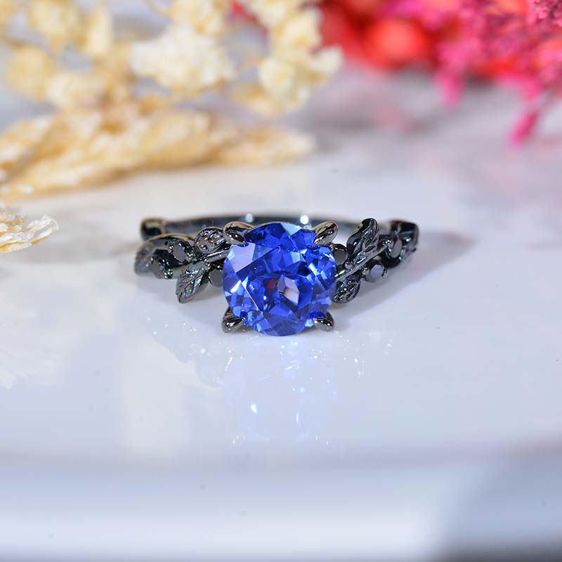 2 Carat Brilliant Cut Royal Blue Sapphire Floral Black Gold with Black - Giliarto