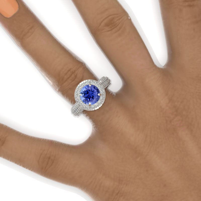 2 Carat Carat Round Cut Natural Genuine Tanzanite Double Halo White Go - Giliarto
