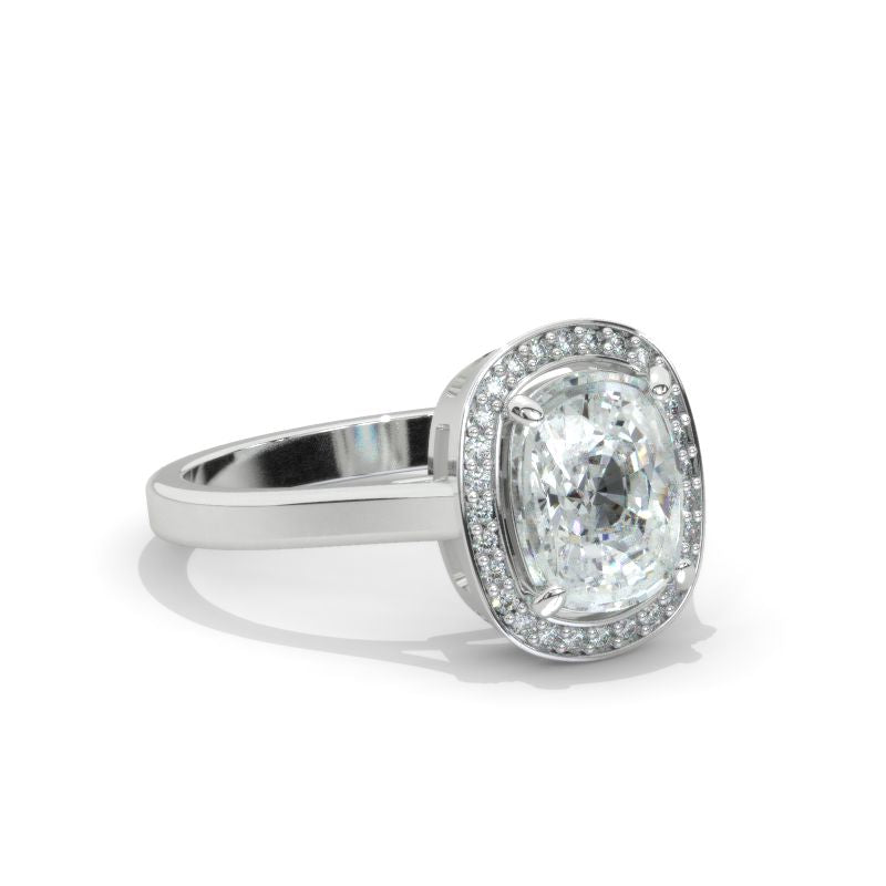 2 Carat Cushion Cut Vintage Style Halo Giliarto Moissanite White Gold Engagement Ring Model 1250