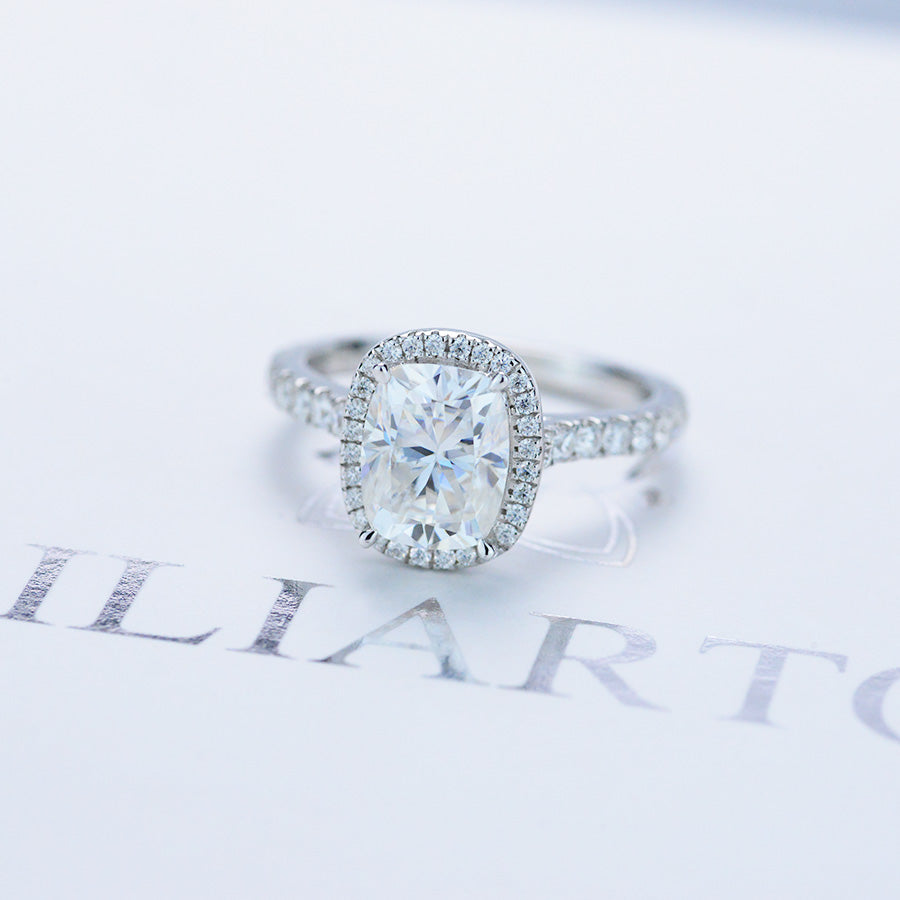 2 Carat Cushion Moissanite 14K White Engagement Ring, Cushion Halo Eng - Giliarto