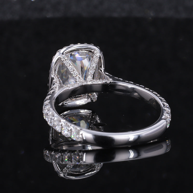 2 Carat Cushion Moissanite 14K White Engagement Ring, Cushion Halo Engagement Ring