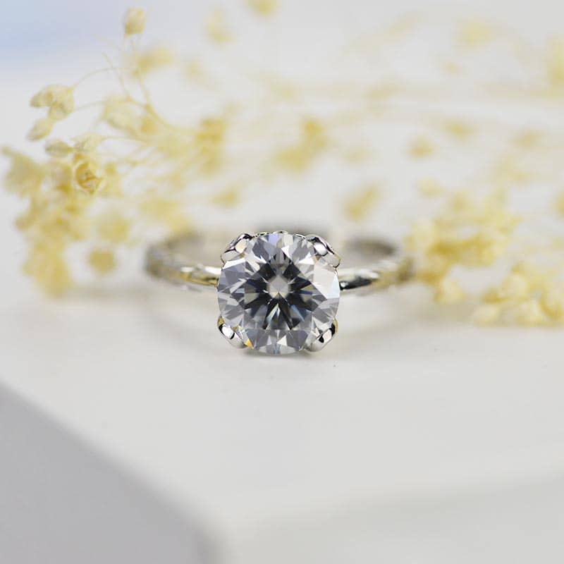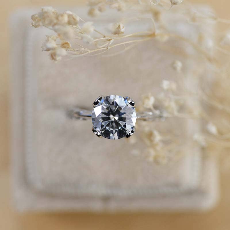 2.0Â Carat Gray Color Moissanite Center Stone ( Round 8mm,VVS1-Clarity, Ex-Cut, Ex-Polish, VG-Symmetry)Â in 14KÂ White Gold.