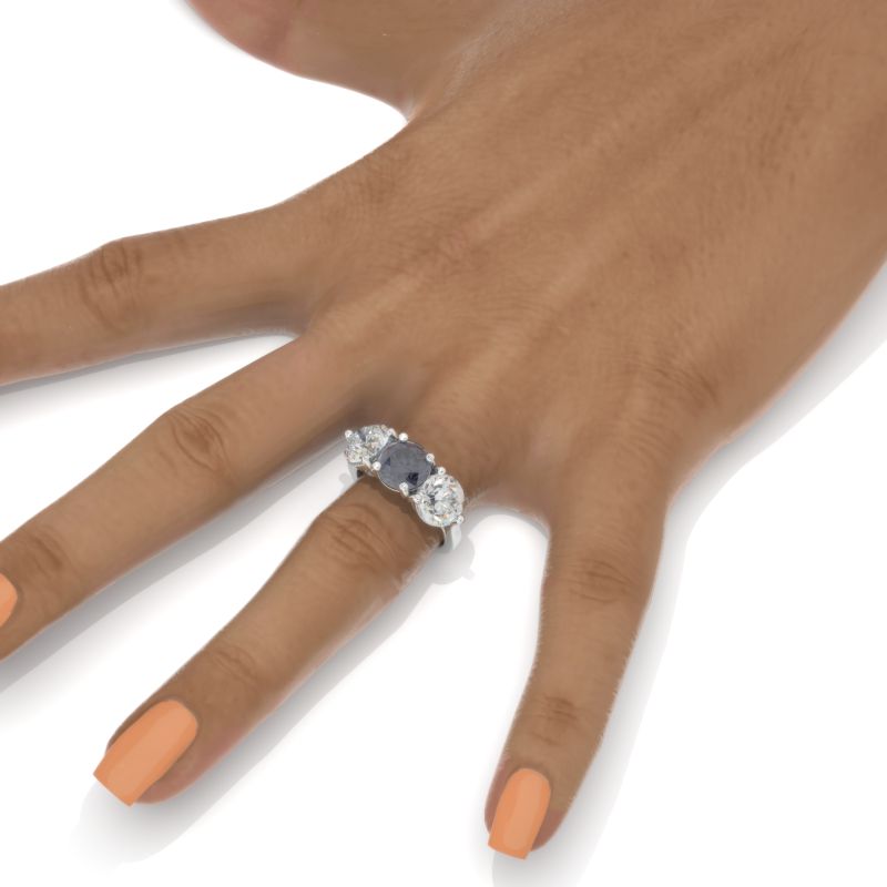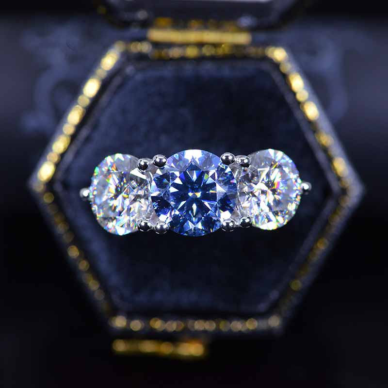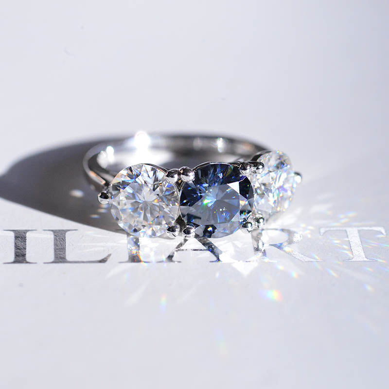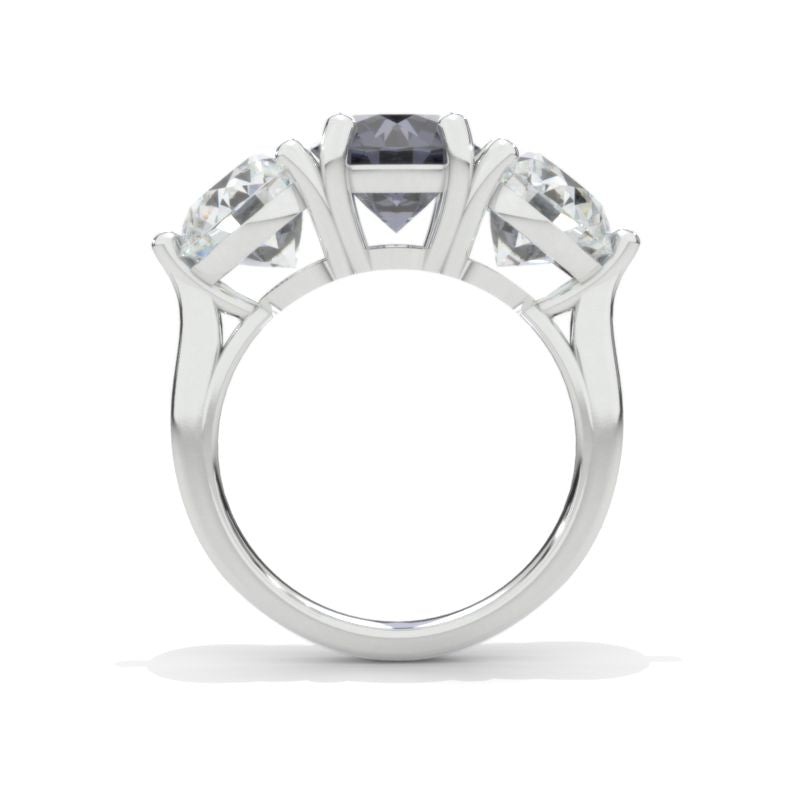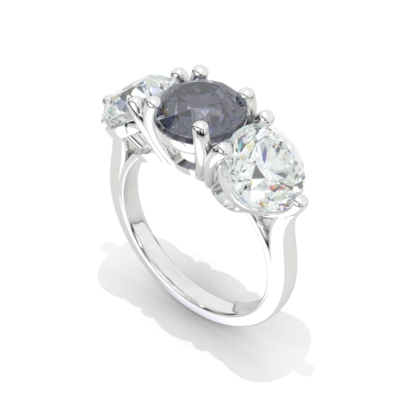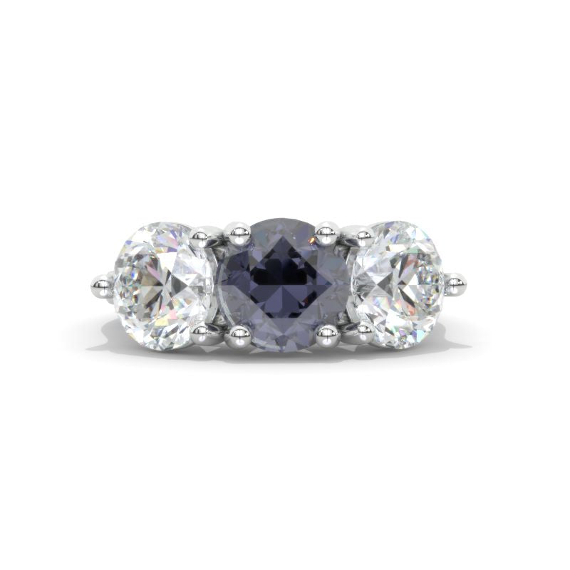 2 Carat 8mm Round Center Moissanite - Dark Gray Blue, VVS1 clarity.