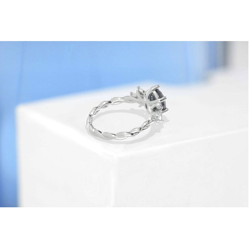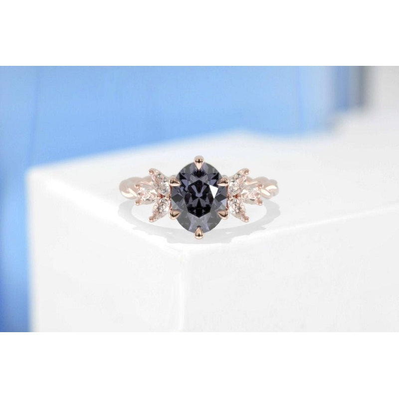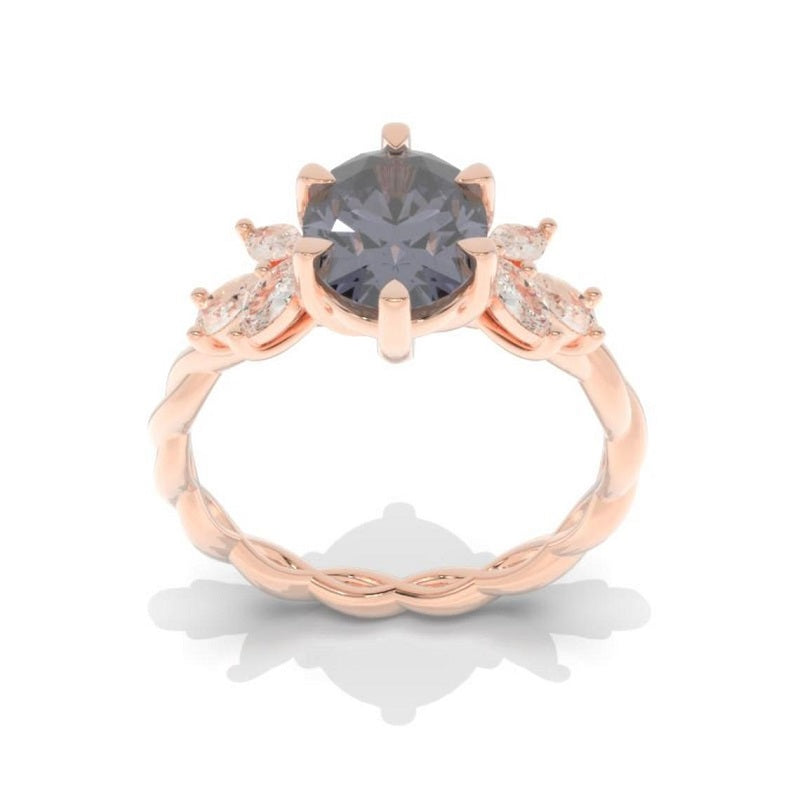 2 Carat Dark Gray Grey Blue Oval LAB-Grown Diamond Engagement Ring, Vintage Marquise Cut Rose Gold Ring, 2ct Oval Rope Shank Ring 14k rose gold Model 498