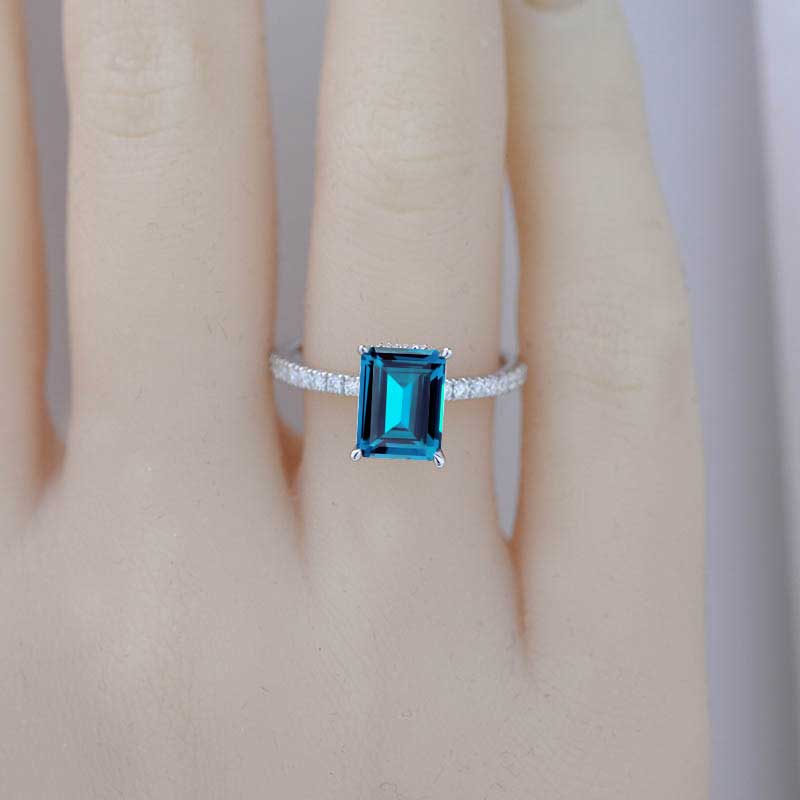2 Carat Emerald Cut Cornflower Sapphire Hidden Halo Engagement Ring