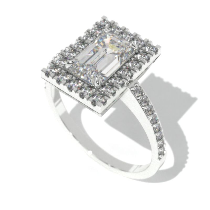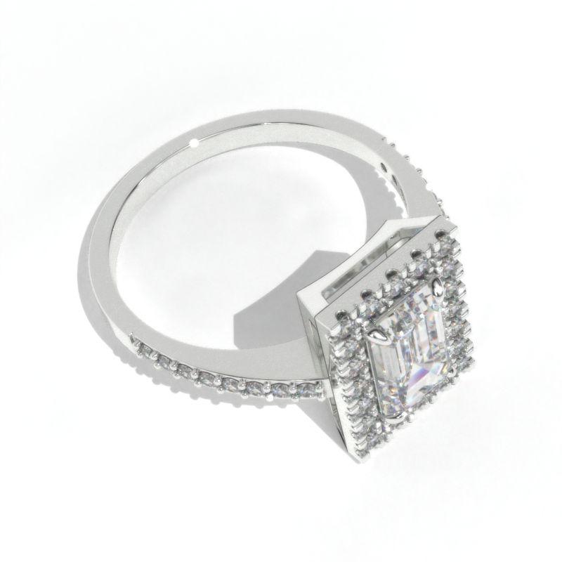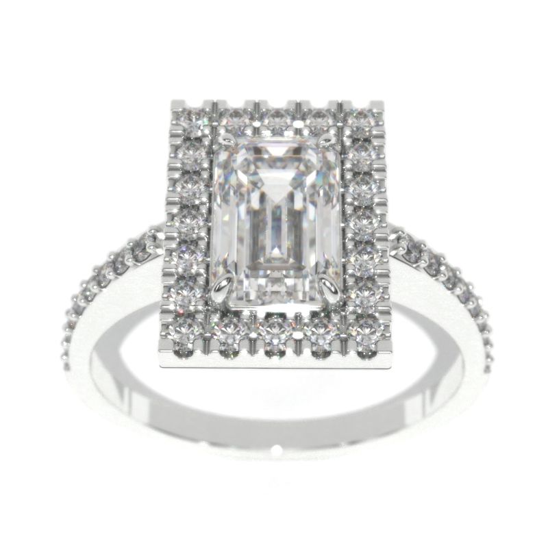 2 Carat Emerald Cut LAB-Grown Diamond Halo Gold Engagement Ring Model 118