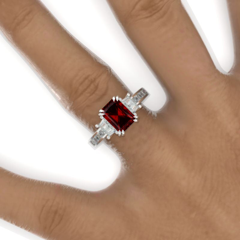 2 Carat Emerald Cut Ruby White Gold Engagement Ring - Giliarto