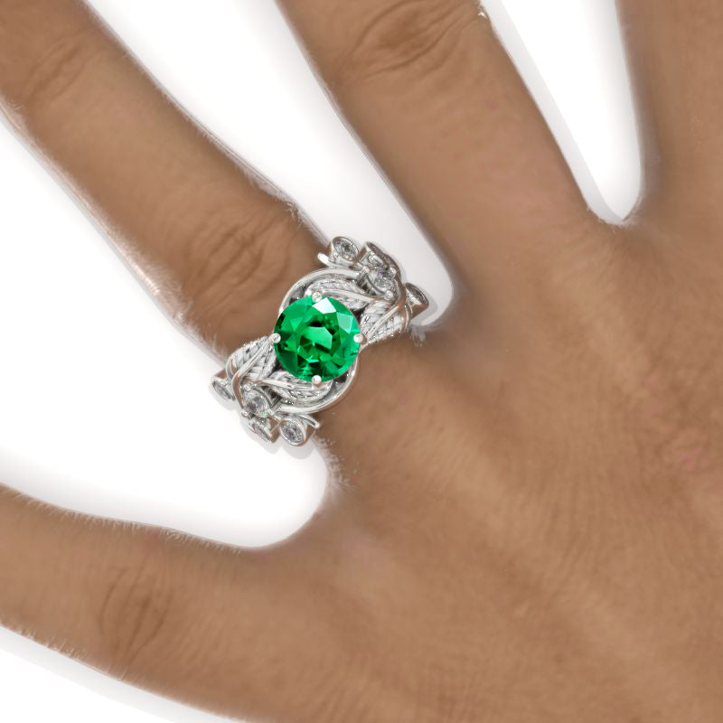 2 Carat Emerald Ornamental Floral Twig White Gold Engagement Ring Mode - Giliarto
