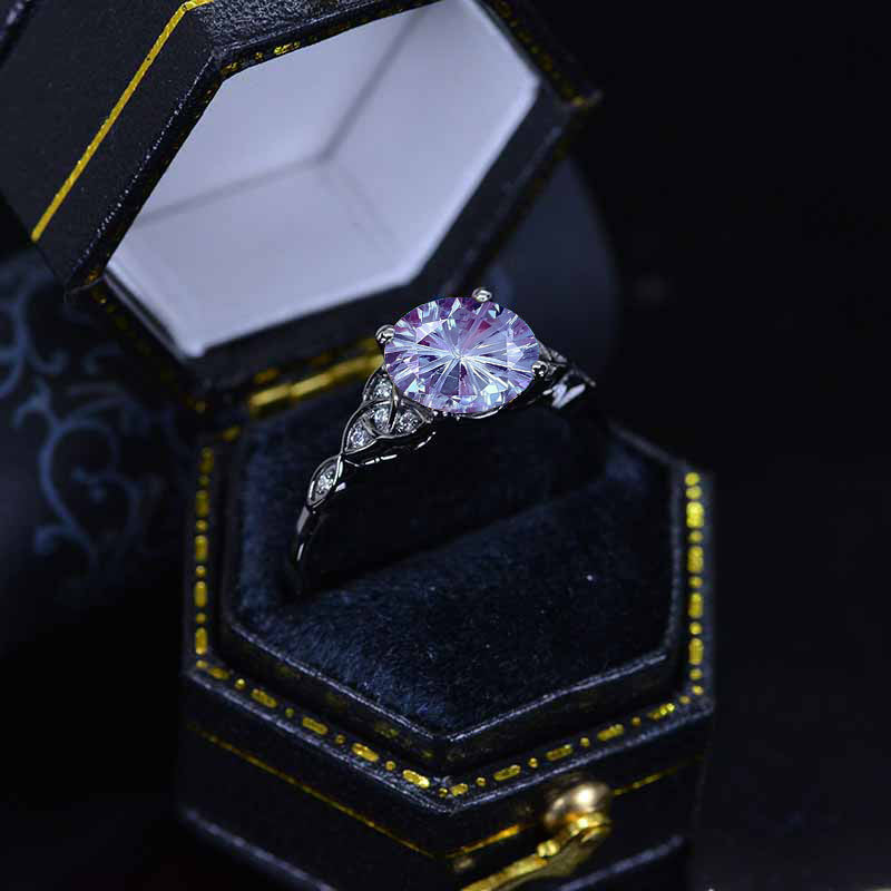 On the image featured Celtic Round Fireworks Cut Ethically LAB-Grown Alexandrite 8mm VG-Symmetry  with-0.1 CTW Moissanite accent stones 14K Black Gold  Ring.