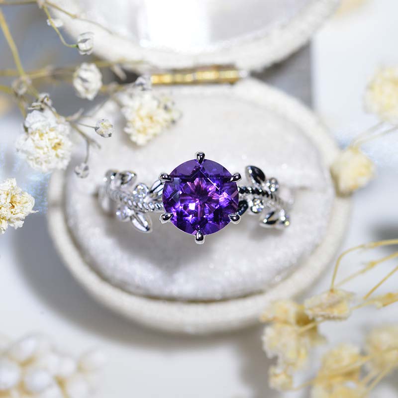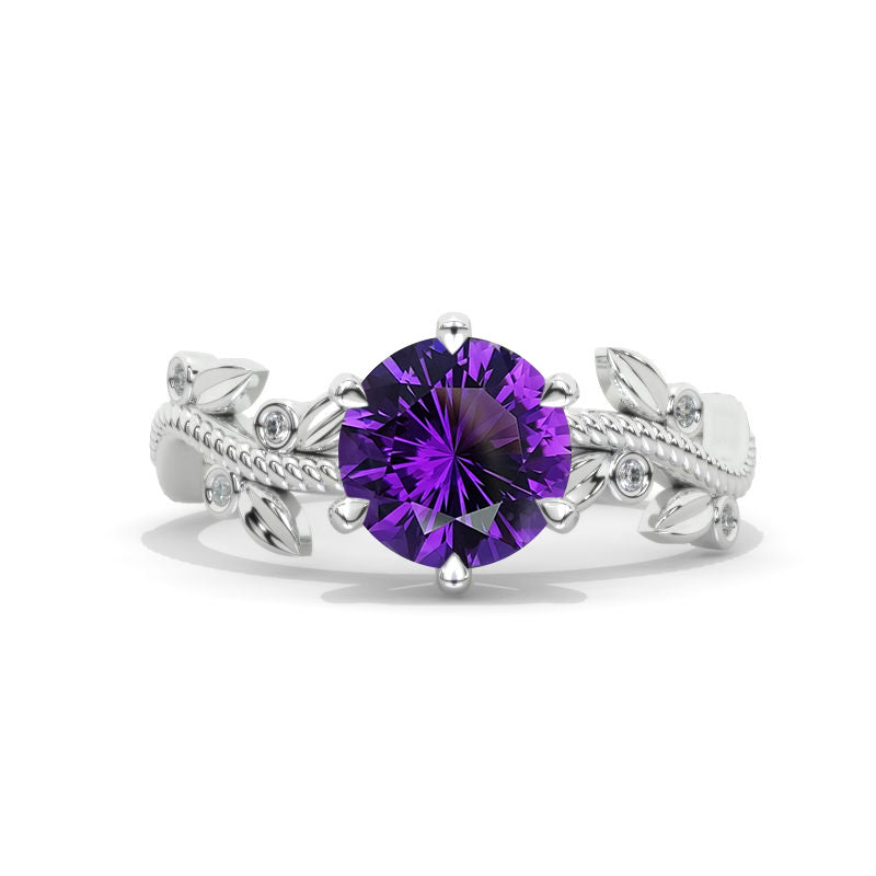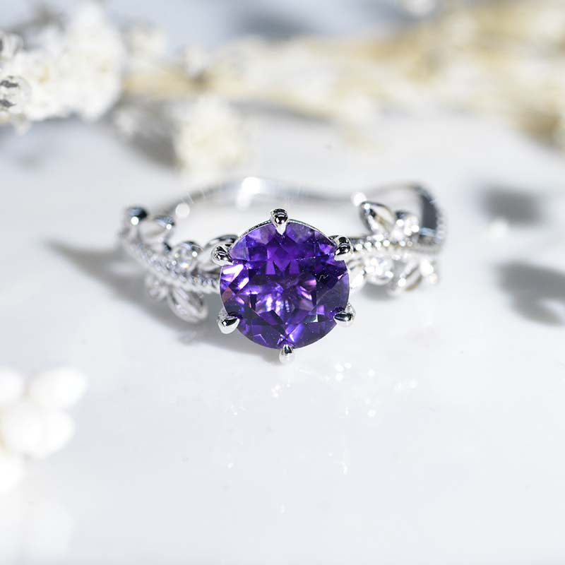 2 Carat Floral Celtic Natural Amethyst Engagement Ring - Giliarto
