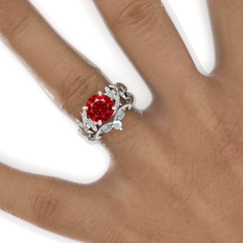 2 Carat Floral Celtic Ruby Engagement Ring Twig Floral Set - Giliarto