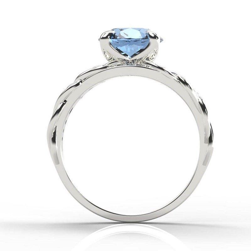 The default design option features 2.0 Carat Aquamarine Center Stone Genuine and 24 Moissanite Accent Stones (0.2 CTW ) with 14K White Gold D-Colorless, VVS1-Clarity, VG-Cut, Ex-Polish, VG-Symmetry