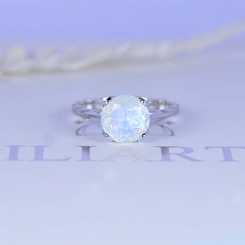 2 Carat Genuine Moonstone 14K White Gold Engagement. Eternity Ring. Op - Giliarto