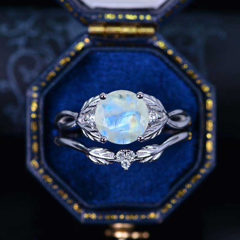 2 Carat Genuine Moonstone Floral Shank Gold Engagement Ring - Giliarto