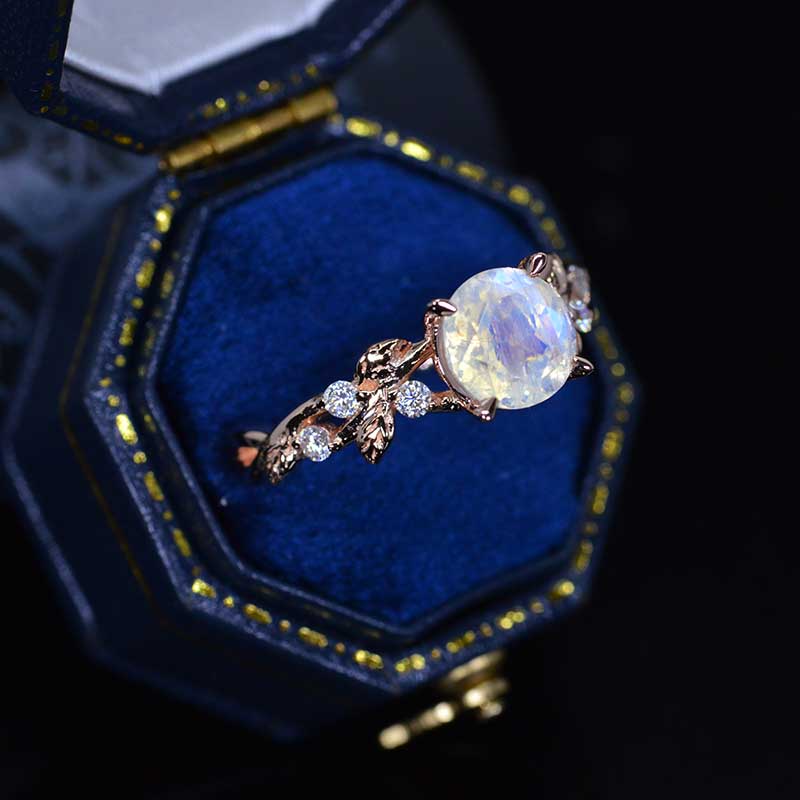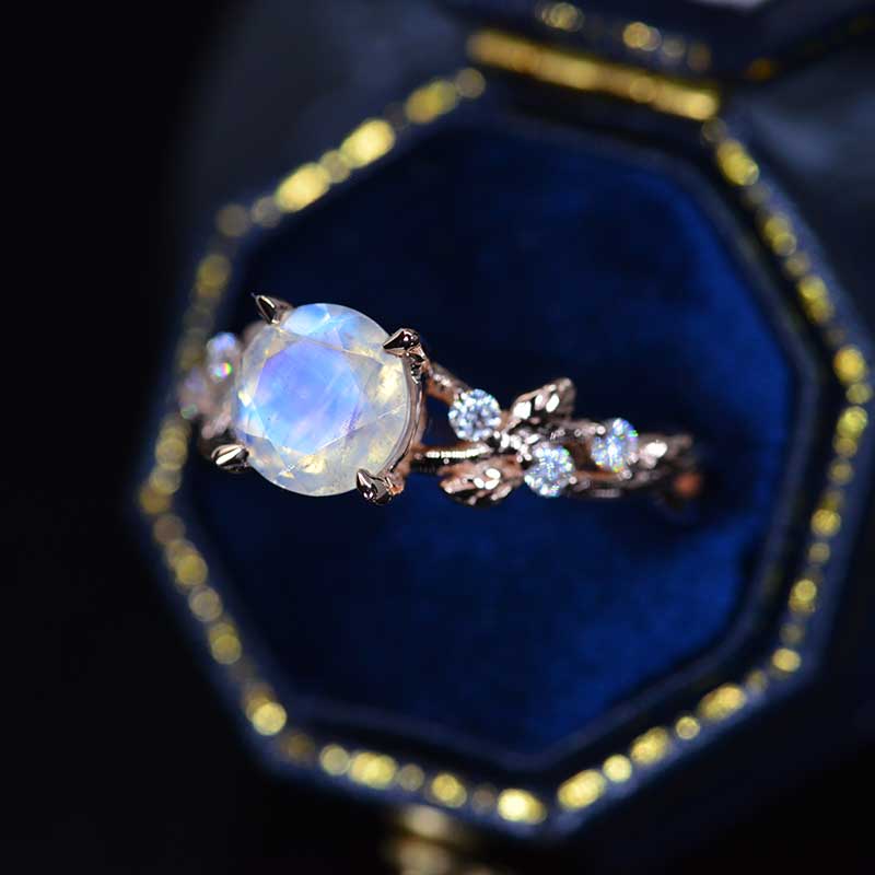 2 Carat Genuine Moonstone Floral Rose Gold Engagement Ring