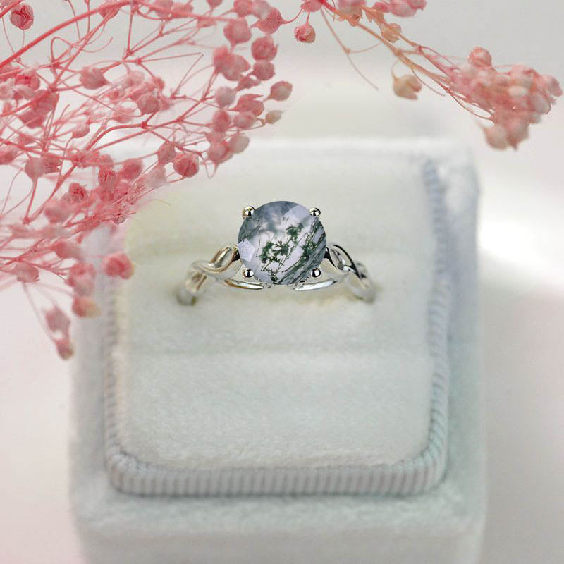 2 Carat Genuine Moss Agate Stone 14K White Wedding Gold Ring Model 153 - Giliarto
