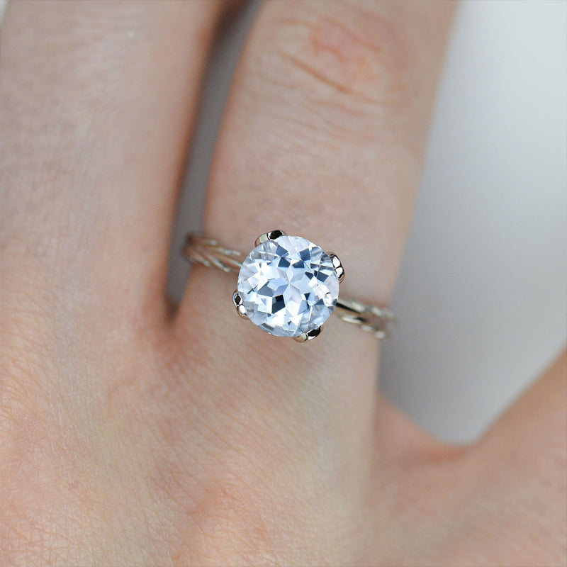 2 Carat Genuine Natural Aquamarine 14K Rose Gold Engagement Ring