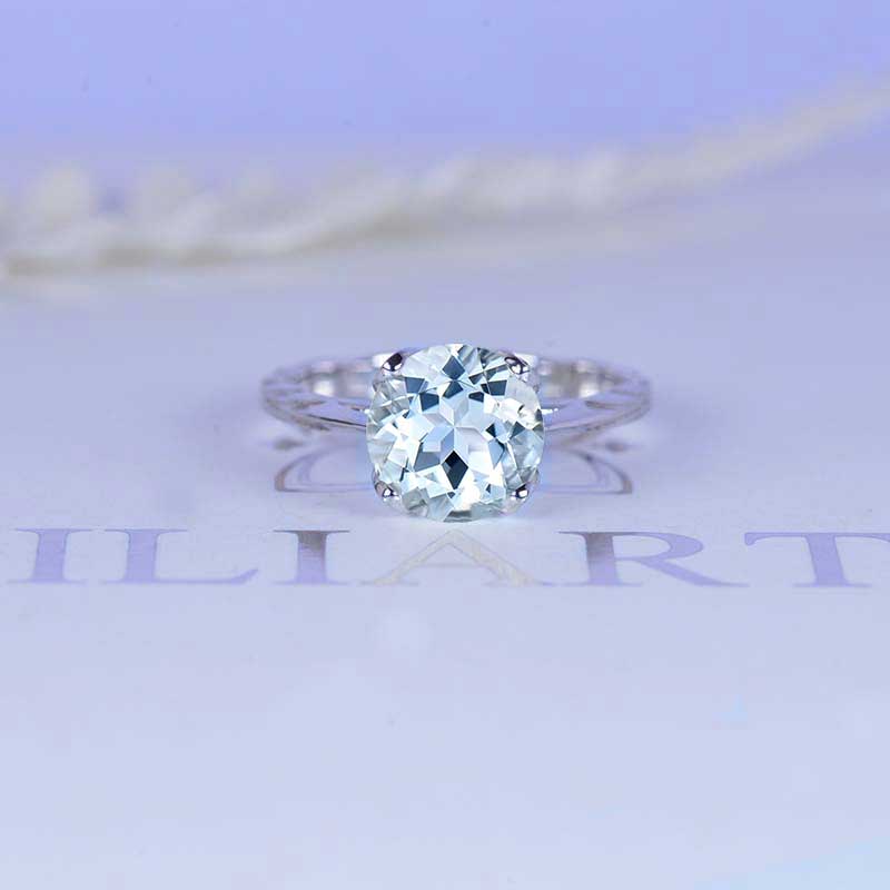 The default design option features 8mm Round cut Genuine Natural Aquamarine,Ā