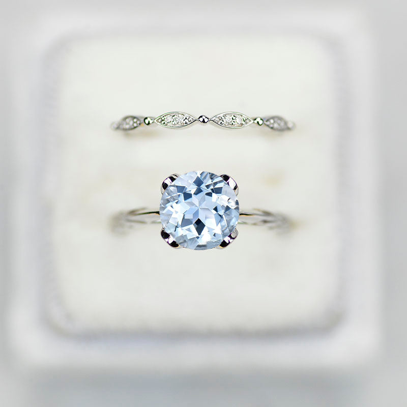 2 Carat Genuine Natural Aquamarine Engagement Eternity Gold Rings Set - Giliarto