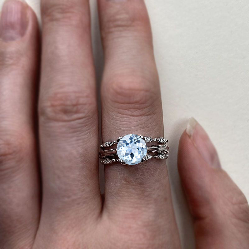 2 Carat Genuine Natural Aquamarine Engagement Eternity Three Rings Set - Giliarto