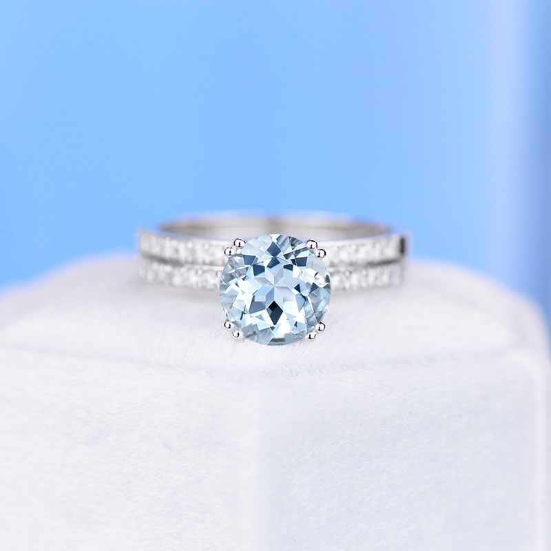 2 Carat Genuine Natural Aquamarine Engagement Eternity Two Rings Set - Giliarto