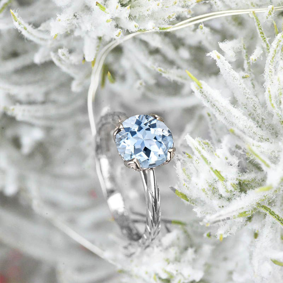 2 Carat Genuine Natural Aquamarine Floral Engagement Ring - Giliarto