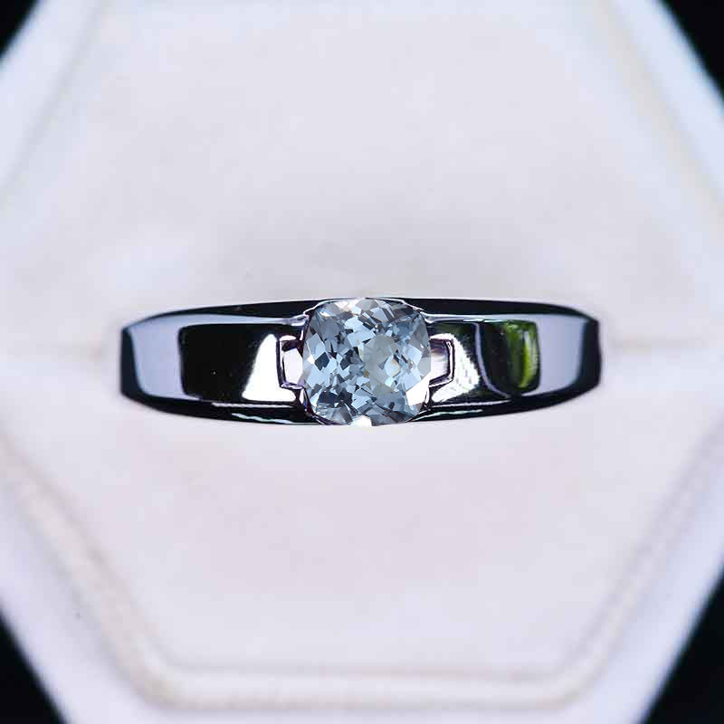 2 Carat Genuine Natural Aquamarine Oval 9x7mm, Ex-Cut, Ex-Polish, VG-Symmetry in 14K White Gold Men's Ring.