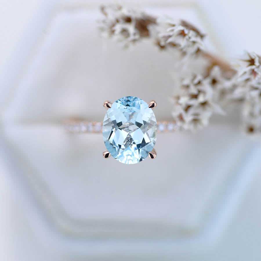 2 Carat Genuine Natural Aquamarine Oval Cut Hidden Halo Rose Gold Enga - Giliarto