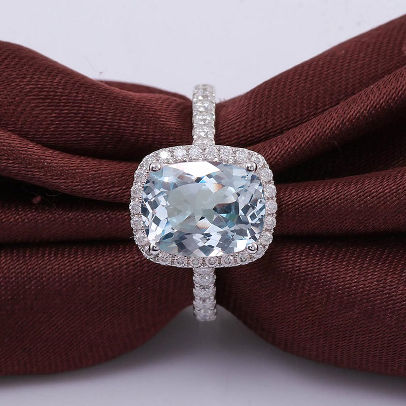 2 Carat Genuine Natural Aquamarine Ring, Genuine Natural Aquamarine Engagement Ring, Gold Genuine Natural Aquamarine Ring, Elongated Cushion Cut Engagement Ring, Halo Genuine Natural AquamarineRing