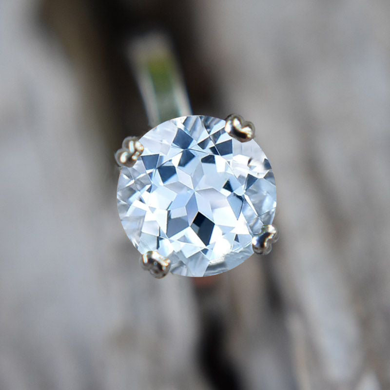 2.0  Carat Genuine Natural Aquamarine Round 8 mm VG-Cut, Ex-Polish, VG-Symmetry Center Stone  in Platinum  Ring.