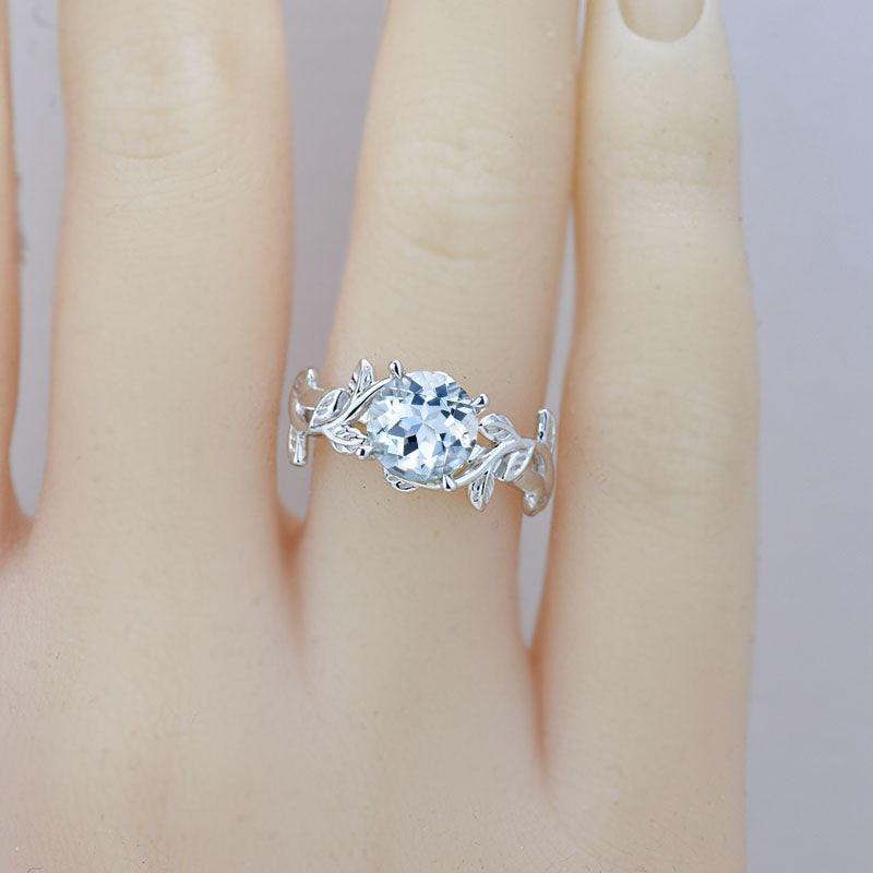 2 Carat Genuine Natural Aquamarine Twig Floral White Gold Engagement R - Giliarto