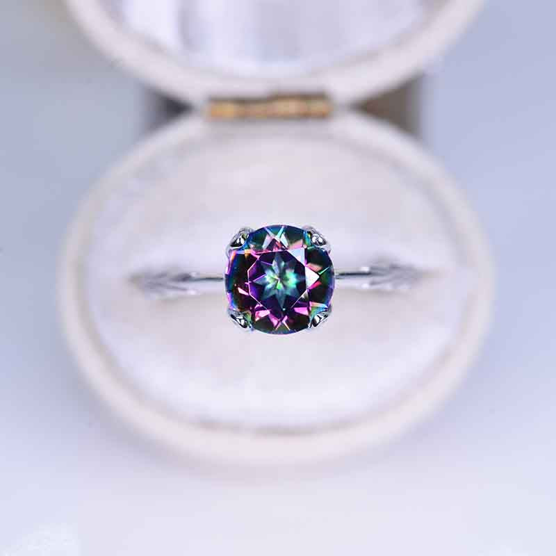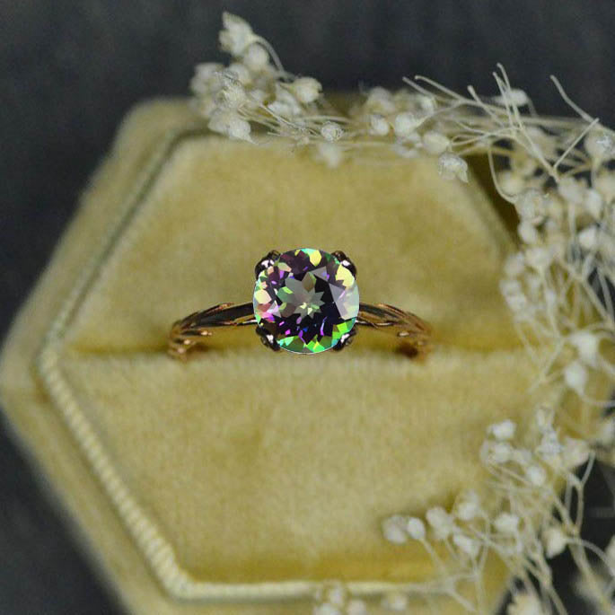 2 Carat Genuine Natural Mystic Topaz Leaf Floral Promissory Ring - Giliarto